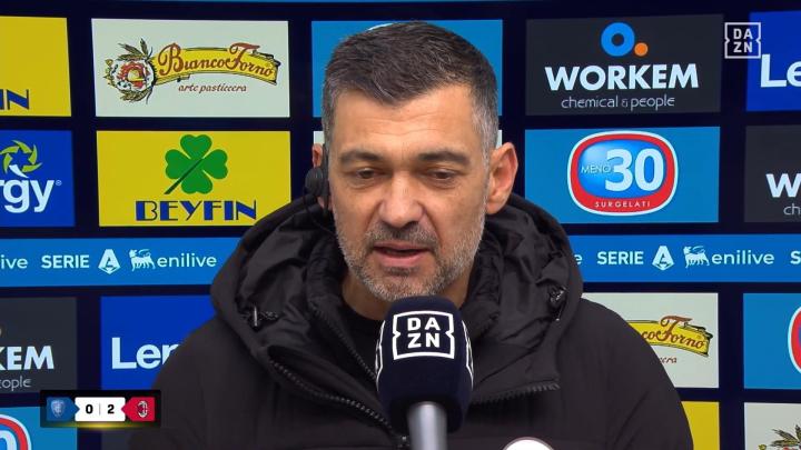 米兰在意甲联赛第24轮客场挑战恩波利,最终以2-0的比分获胜。赛后,主教练孔塞桑接受了采访。孔塞桑表示,在这场比赛中,球队展现出了团结紧密、高位逼抢的防线,这是他们一直在努力提升的方面。尽管没有得到足够的时间和条件,但球队对防守的重视让他感到满意。