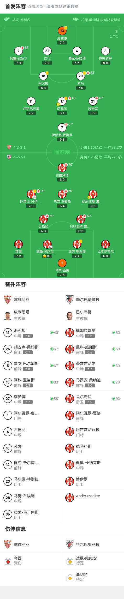 毕尔巴鄂竞技在本场比赛中展现出了顽强的防守能力和优秀的进攻组织能力。他们在客场面对塞维利亚取得了一场来之不易的胜利,也让球迷看到了球队的潜力和实力。而塞维利亚则在比赛中遭遇到了一定的挑战,无奈在对手的防线面前无法取得入球,最终错失了比赛的胜利。